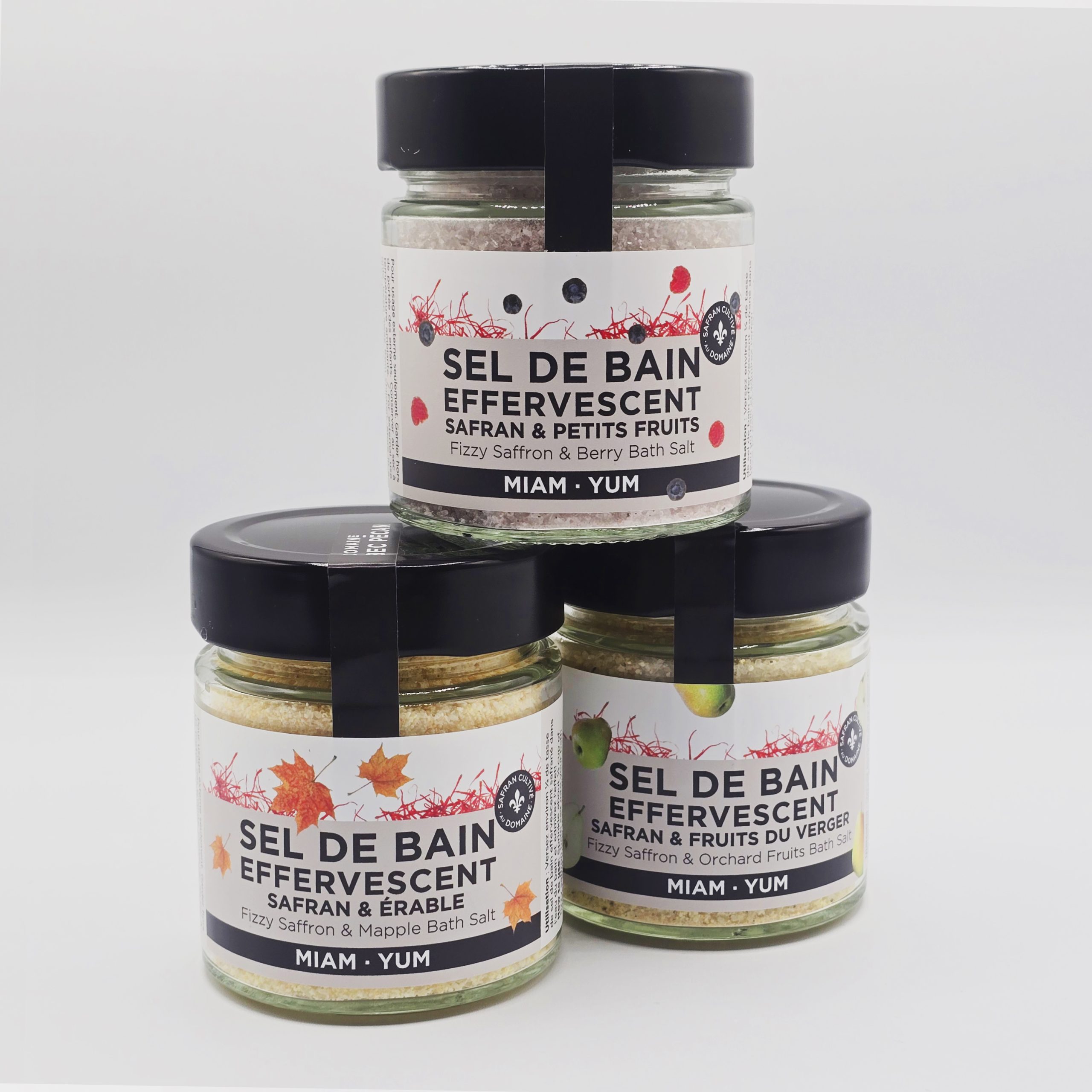 • 1 x 225 g de sel de bain au safran cultivé au Domaine et aux fruits du verger.